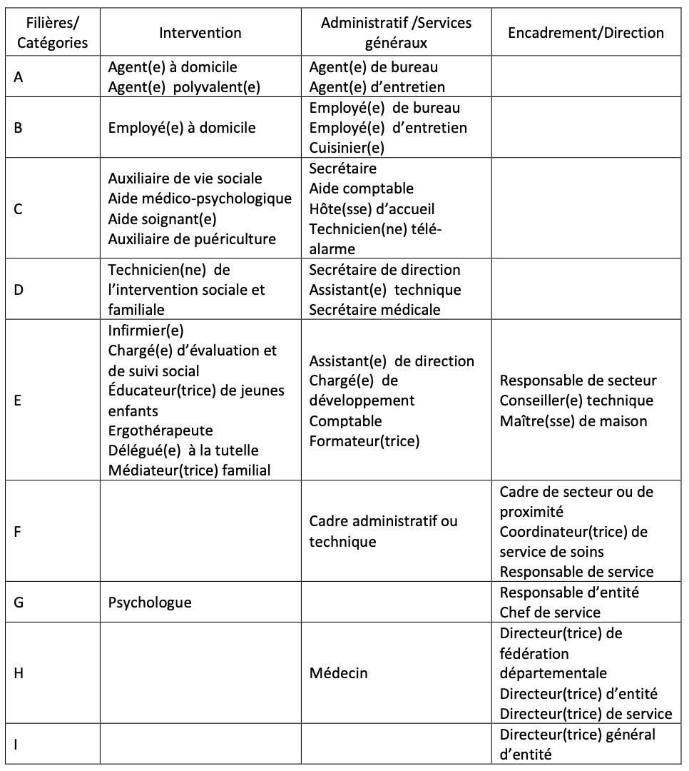 La convention ADMR définit les éléments devant caractériser les emplois : la finalité, les activités principales, les conditions d’accès et les compétences.