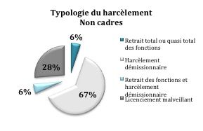 Le 1er mode de harcèlement dans les grandes entreprises (42 %) est le retrait total ou partiel des fonctions, dans les PME-PMI, c’est le recours au harcèlement moral qui est mis en œuvre dans 50 % des cas.